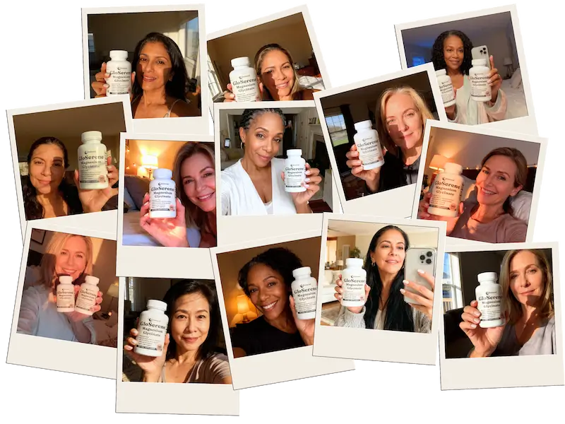 That’s very common. Magnesium glycinate in GloSerene helps relax your muscles and calm your nervous system so your body can settle for sleep. For extra support with a busy or racing mind, many women combine GloSerene with GloRest—a supplement designed specifically to ease mental stress and promote deeper relaxation. Together, they work synergistically to help your whole body unwind naturally.*